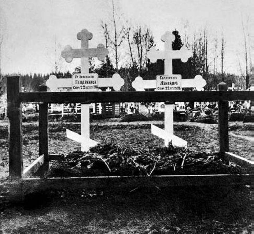 On the night of 4th September 1918, Anastasia Hendrikova and Ekaterina Schneider were awakened and taken with a group of prisoners outside the city where they were killed. According to the Whites investigation at the time, they were both shot at point blank range followed by a strong blow to the back of the head. Only a few months later, after the arrival of the White Army, the bodies of the dead were discovered, and they were buried in the cemetery in Perm.