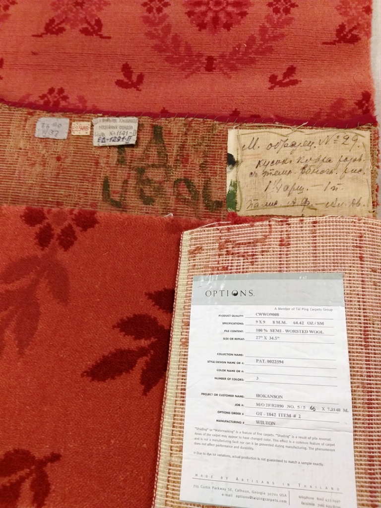 The costume sketch for Nicholas II was developed by the Director of the Hermitage, Ivan Alexandrovich Vsevolozhsky (1835-1909) and the artist of the St. Petersburg Imperial Theaters, Yevgeny Petrovich Ponomarev (1852-1906). Two types of velvet and gold brocade were ordered from the Supplier of the Imperial Court – the Sapozhnikovs firm. The fancy dress for Emperor Nicholas II, called “The Small Tsar’s Attire”, was sewn by the theatrical costume designer of the Imperial Theaters Ivan Osipovich Kaffi (1860-19 ??). He was assisted by two dressmakers, whose names have not survived. The tsar’s hat was created in the hat workshop of the brothers “Bruno”, suppliers of the Imperial Court since 1872..
