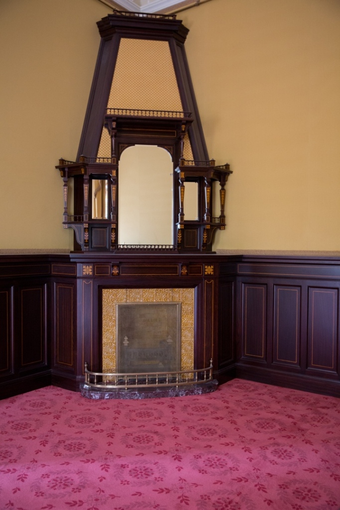 PHOTO: For the background, photographers utilized a stand imitating the walls of a 17th century chamber of the Terem Palace in the Moscow Kremlin was installed in the Concert Hall of the Winter Palace – as seen in the photo above. The throne chair, is a prop, from the storeroom of the Hermitage Theater.