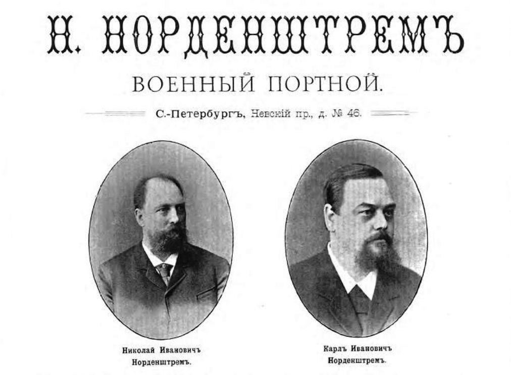 Nicholas II placed orders for all his military uniforms from Nordenstrem, whose shop was located at 46 Nevsky Prospect in St. Petersburg. The famous atelier also received orders from Their Imperial Highnesses the Grand Dukes Alexei, Sergei and Pavel Alexandrovich; Konstantin and Dmitry Konstavtinovich; Nikolai and Peter Nikolaevich; George and Alexander Mikhailovich; Kirill, Boris and Andrey Vladimirovich; Alexander and Konstantin Petrovich Oldenburgsky; Prince Peter Alexandrovich of Oldenburg; Duke Eugene Maximilianovich Leuchtenberg; as well as many Russian and foreign dignitaries.