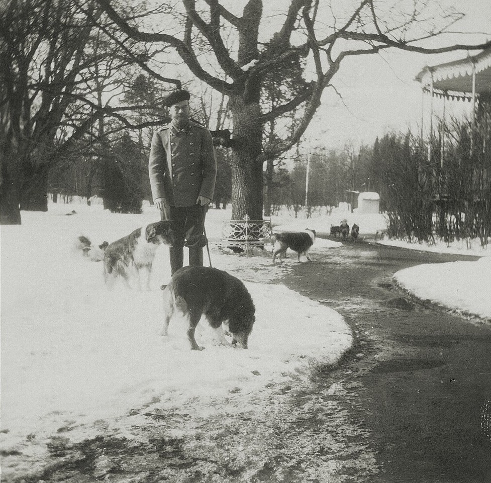 PHOTOS: Nicholas II with his collies in the garden of the Winter Palace. Winter 1902