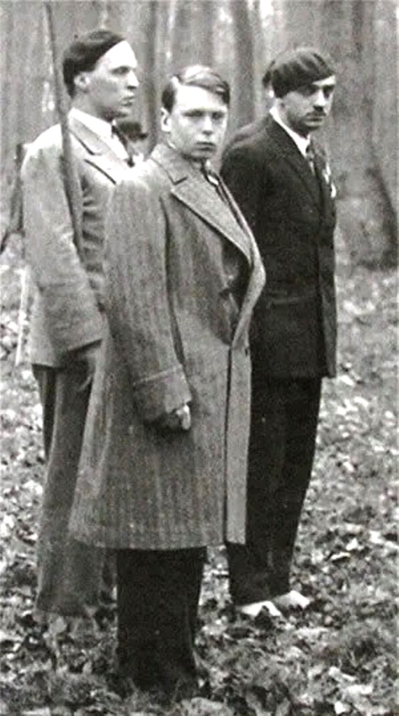 PHOTO: Vladimir Kirillovich (center) with Alexander Lvovich Kazem-Bek (right), taking part in a Union of Young Russians rally. December 1930