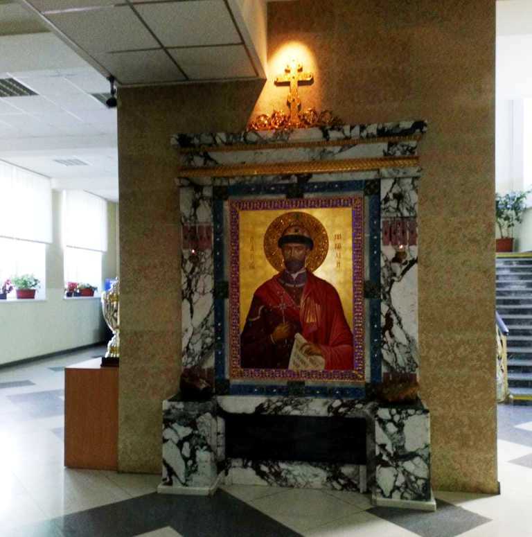 The icon was presented to the regiment in August 2001 by the Moscow Caledonian Club “on behalf of the Russian people”. The icon of the holy martyr Nicholas II accompanies the Scots Dragoon Guards Scottish regiment wherever they are deployed.