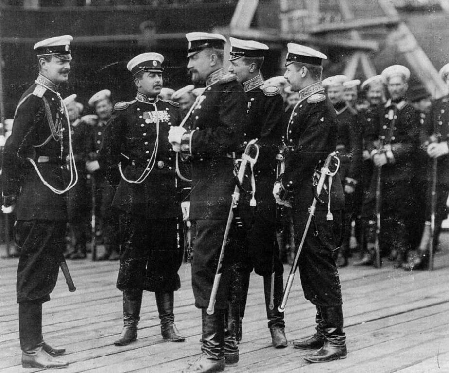 PHOTO: Grand Duke Kirill (left) with officers and sailors of the Guards crew