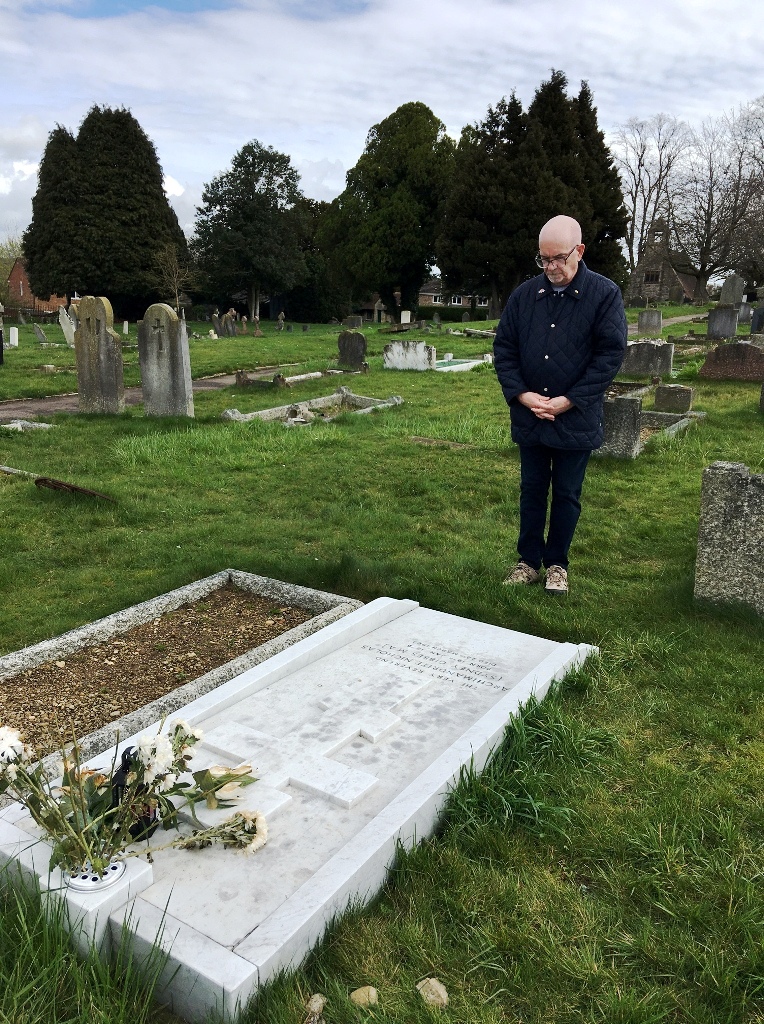 PHOTO: Paul Gilbert standing at the grave of Charles Sydney Gibbes (later Father Nikolai), Headington Cemetery, Oxford, England. April 2023.