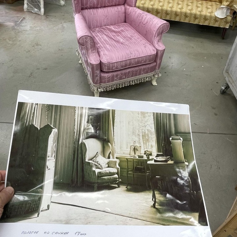 The Tsarskoye Selo Restoration Workshop have now recreated an exact copy of the iconic chair based on the original from vintage photographs. The chair will be moved into the corner of the Mauve (Lilac) Boudoir of the Alexander Palace, and will be on display when the palace reopens this summer.