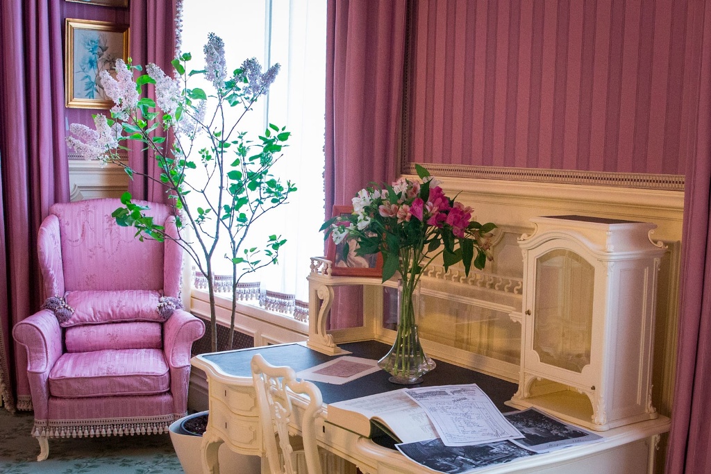 Among the Empress’s quarters was the Mauve Boudoir, which would become her favourite room. According to legend, the Empress gave Alexnder Meltzer a lilac branch, her favourite flower, so that he could choose the colour scheme for the decoration of the room.