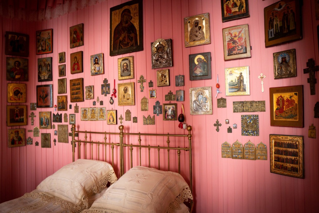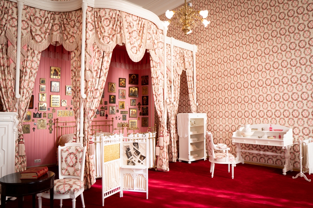 Entry to the Imperial Bedroom could be made through the Pallisander (Rosewood) Living Room and the Mauve (Lilac) Boudoir. To wake the emperor and empress each morning, one of the footmen knocked three times on the door of the Mauve (Lilac) Boudoir with a silver staff. By this time, Nicholas was usually already awake and already at work at his desk, while Alexandra often got up late, and if she was not feeling well, did not leave her private rooms.