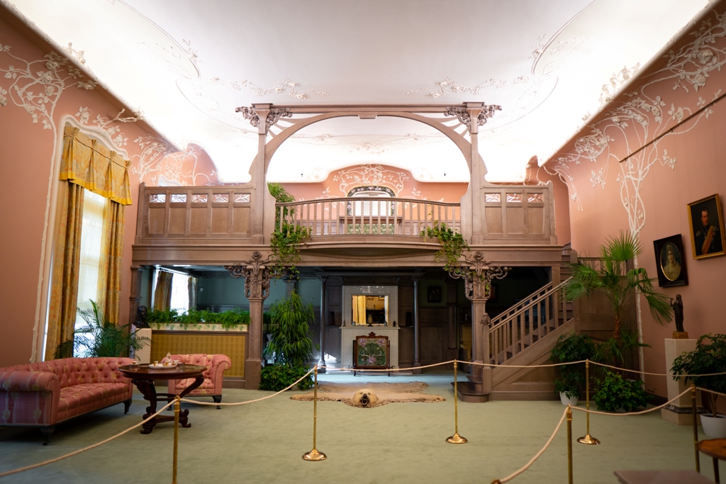 Its architectural design with its Art Nouveau style and forms stands out sharply against the background of the rest of the interiors. The main architectural accent is the spacious mezzanine, where the Empress painted and made handicrafts.