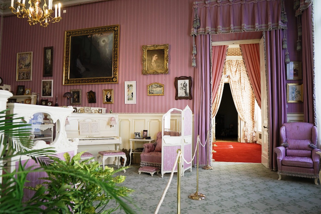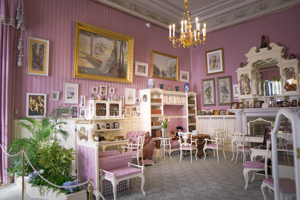 During the more than two decades of Alexandra Feodorovna’s life in Russia, the Mauve (Lilac) Boudoir – her favourite room in the Alexander Palace – was never redesigned. The mauve silk was ordered from the Parisian firm of Charles Bourget. In this room, the emperor and empress, along with their children often drank coffee after breakfast and gathered for evening tea. Alexandra Feodorovna spent a lot of time here writing letters and reading.