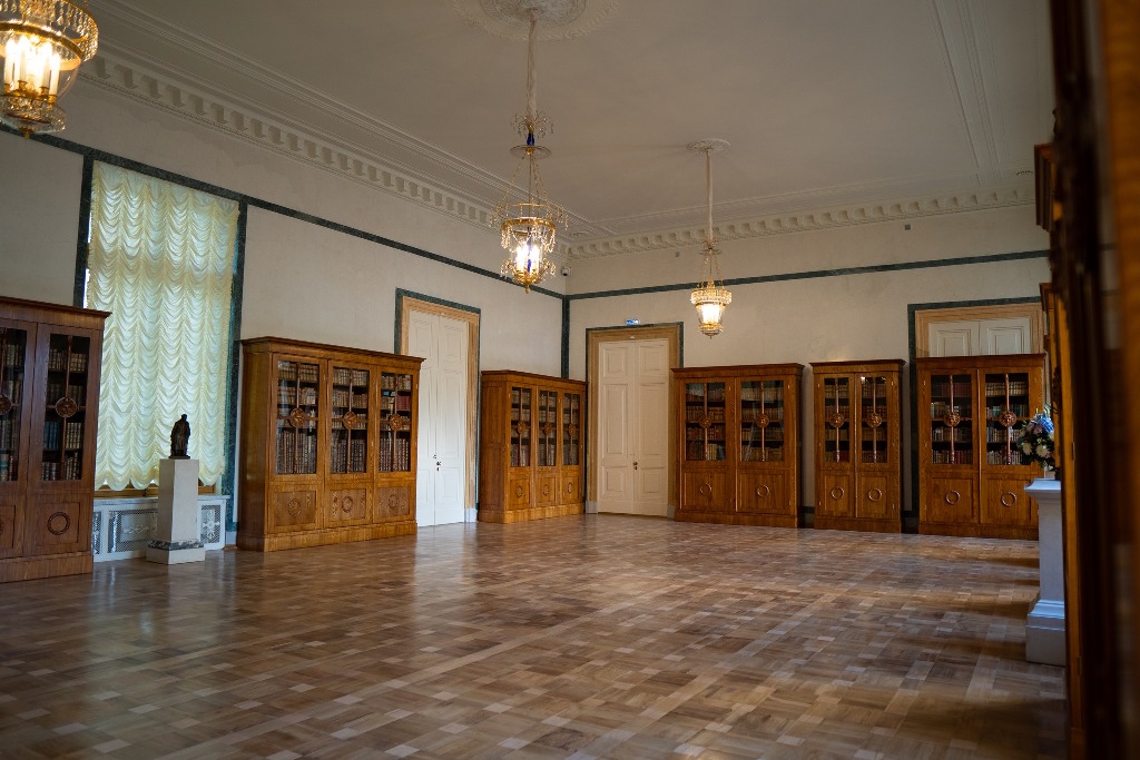 According to the pre-war museum inventory, there were almost 19 thousand volumes in the library halls of the palace and 6 thousand volumes were in private rooms. The Large and Small Libraries today exhibit more than 5 thousand volumes.