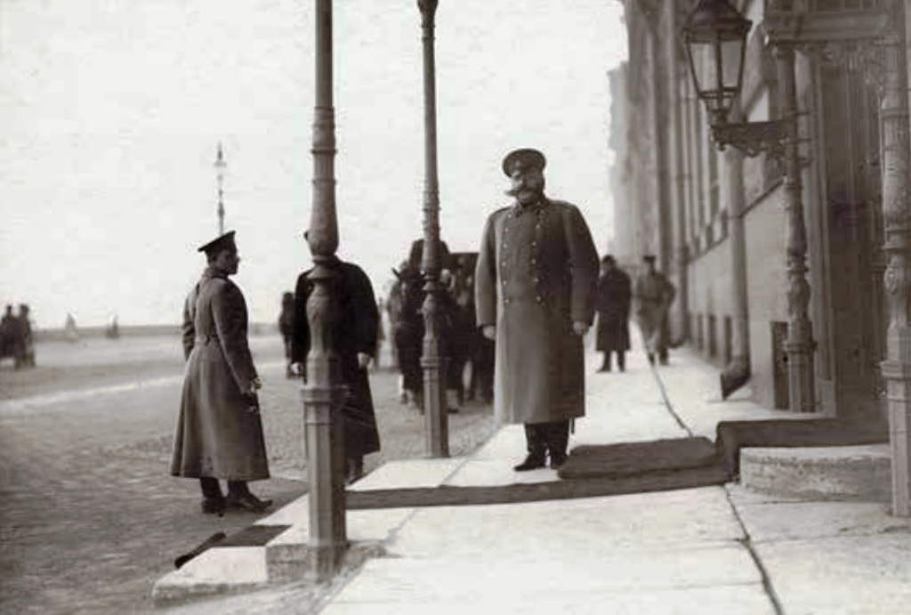 In total, by 1914, there were 13 permanent (round-the-clock) guard posts inside the Alexander Palace, and at night an additional post was set up at the entrance to the private rooms of the August couple. A hidden security unit of 15 non-commissioned officers of the guard regiments also operated in the palace, disguised as palace servants.