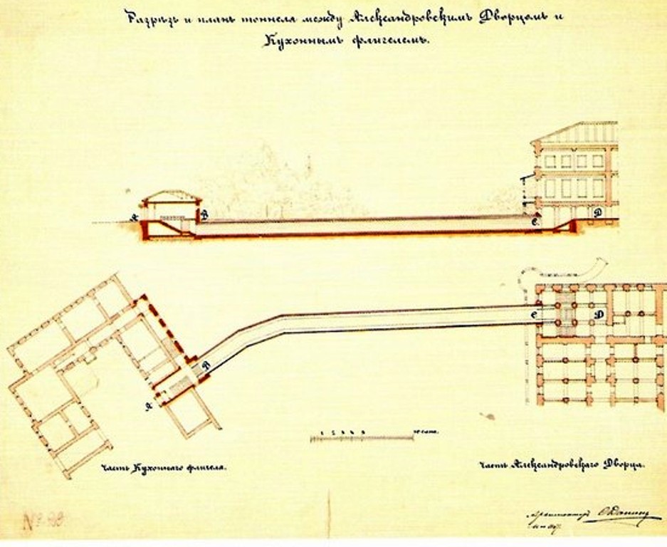 PHOTO: plan of the underground tunnel, connecting the palace with the kitchen building, used by palace employees
