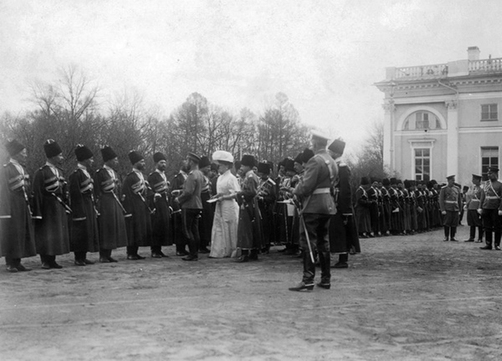 PHOTO: Emperor Nicholas II and Empress Alexandra Feodorovna, review His Imperial Majesty’s Own Convoy – the Cossack unit which served as the Tsar’s elite guard – on the parade ground in front of the Alexander Palace