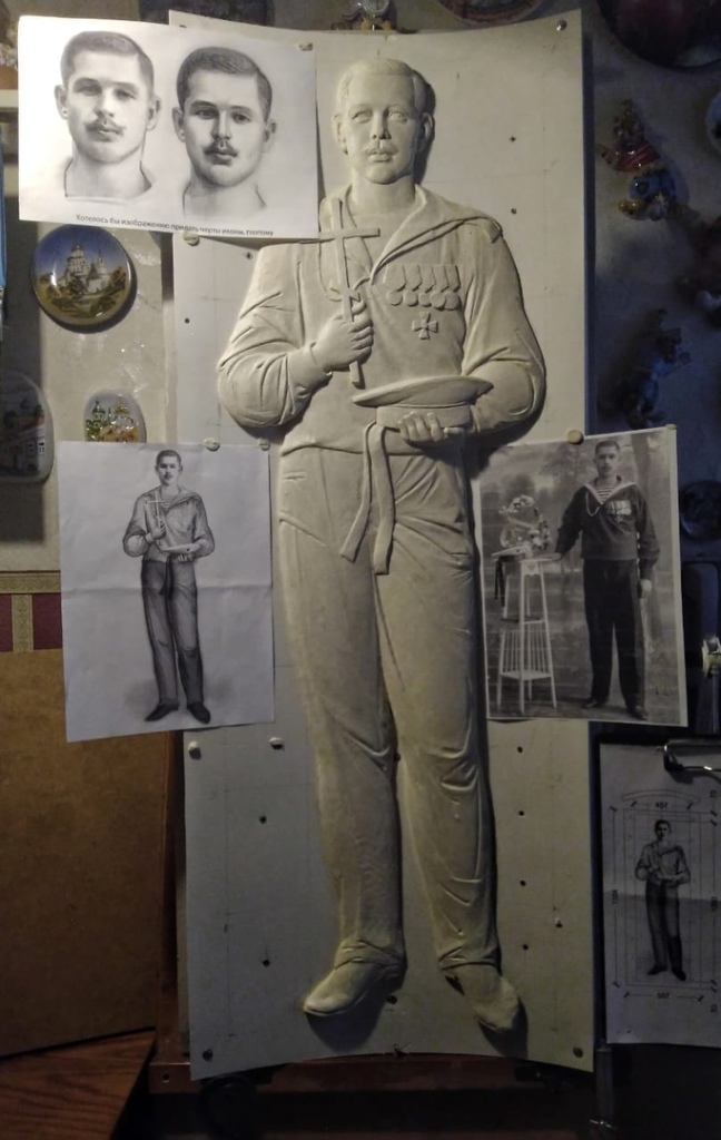 PHOTO: sketches, photos and stone bas-relief of Klimenty Grigorievich Nagorny