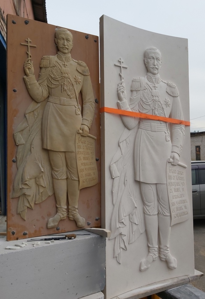 When the sketches were ready, the sculptors got down to work. First, it was necessary to make models from plasticine – a putty-like modelling material made from calcium salts, petroleum jelly and aliphatic acids. In order to “turn” a drawing into a three-dimensional figure, the sculptor constantly checks it with photographs. From the plasticine model, an exact plaster copy is made, and from that, the stone carvers copy the image. The talented masters of the St. Petersburg workshop of Mikhail Parfentiev carefully worked on every detail of the four-meter stele with relief images of the Tsar’s subjects. Work on the monument took nearly three years to complete.