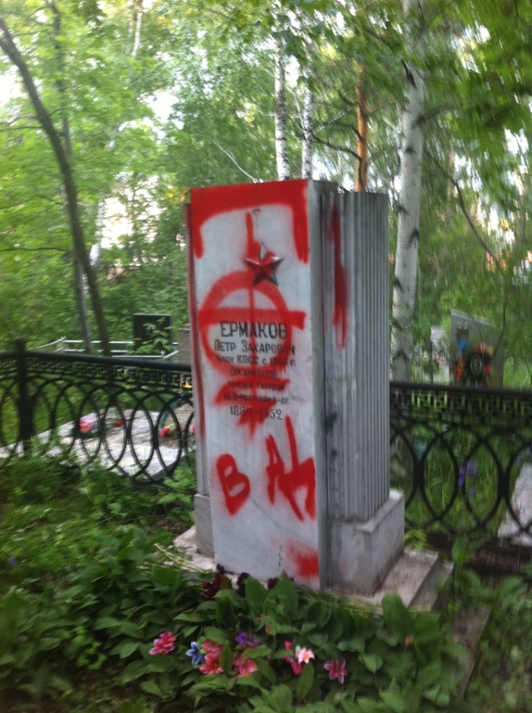 Every year on 17th July – the day marking the anniversary of the murder of Emperor Nicholas II and his family – the grave of the Bolshevik revolutionary Peter Ermakov, has been vandalized by local monarchists, who douse his gravestone with red paint.