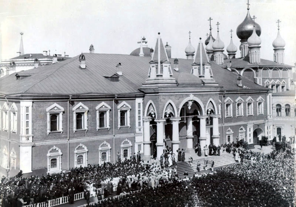 1 – The Maly Nikolayevsky Palace or Small Nicholas Palace was a three-storey building located in the Kremlin on the corner of Ivanovskaya Square. Originally built in 1775, it served as the official Moscow residence of Imperial Family up until the construction of the Grand Kremlin Palace in 1838-1849. The palace was a favourite residence of Grand Duke Nicholas Pavlovich (future Emperor Nicholas I). On 29th (O.S. 17th) April 1818, his son, the future Alexander II, was born in the palace, who considered it the home of his childhood. Between 1891 and 1905, the palace became a residence of Grand Duke Sergei Alexandrovich during his years as Governor-General of Moscow.