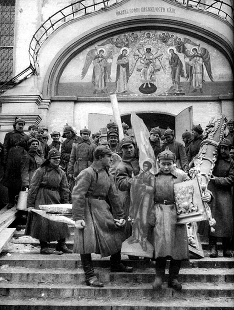 PHOTO: the desecration and looting of Russian Orthodox Churches by Bolshevik thugs and criminals after the 1917 Revolution