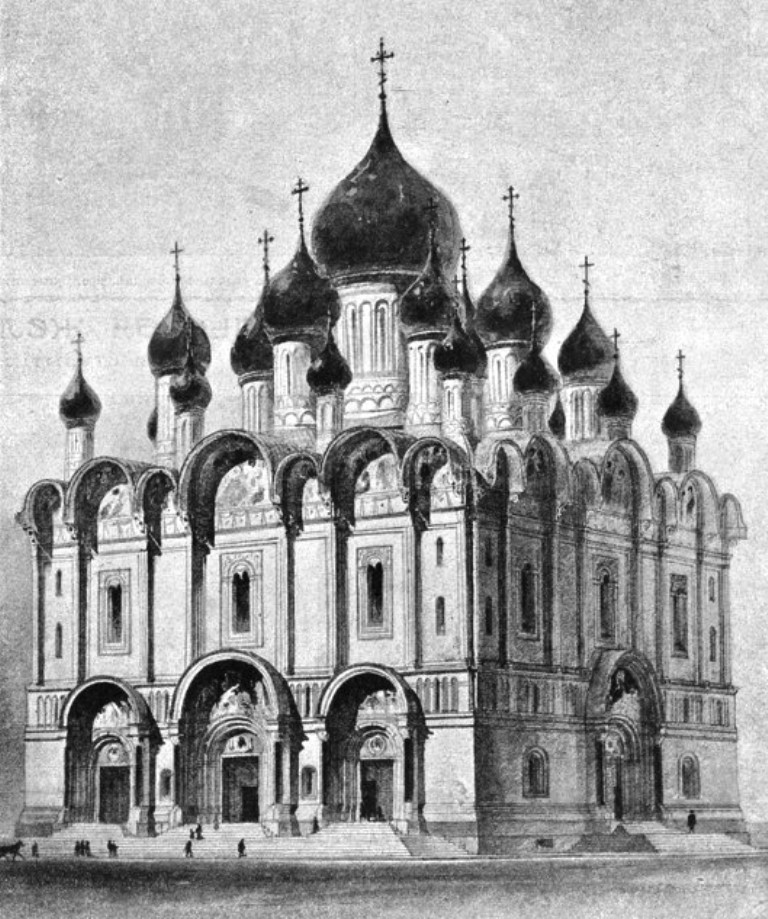 The creation of the project was entrusted to the architect Alexander Nikonorovich Pomerantsev (1849-1918), who executed it in the Old Russian style according to the sketches of the artist Viktor Mikhailovich Vasnetsov (1848-1926), as a 70-metre-tall memorial to Alexander II’s Emancipation reform [the liberation of peasants from serfdom] in 1861.