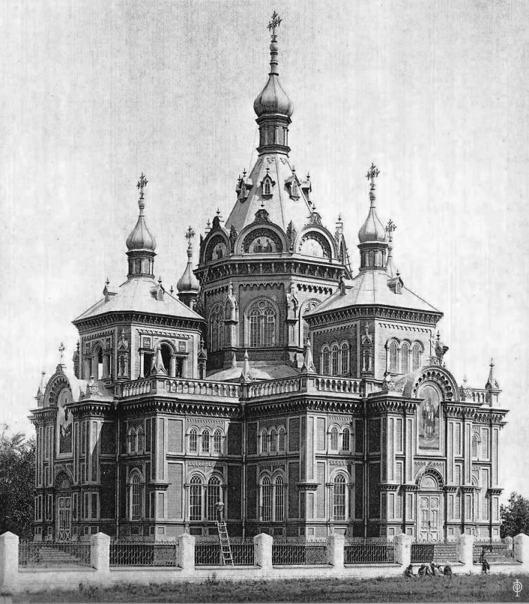 Completed and consecrated on 8th October 1864, the cathedral combined features of different styles: Romanesque of the Middle Ages, elements of Gothic, and the interior in the Old Russian and late Empire styles.