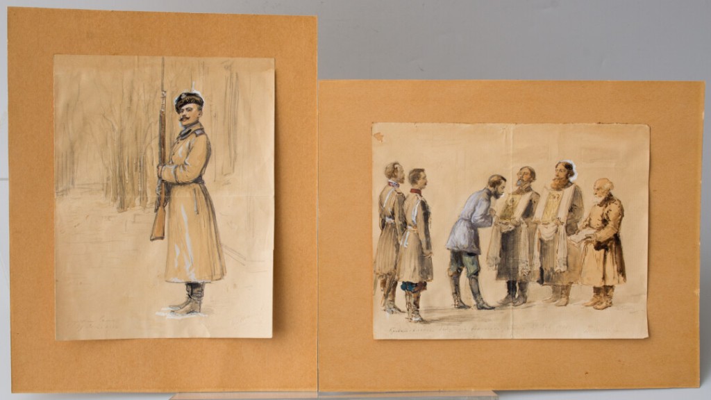 He was also an artist, educated at the Imperial Academy of Arts in St. Petersburg. During the war, he specialized in military portraiture, making pencil sketches and watercolor portraits of soldiers and officers, observing them in battles and on leave.