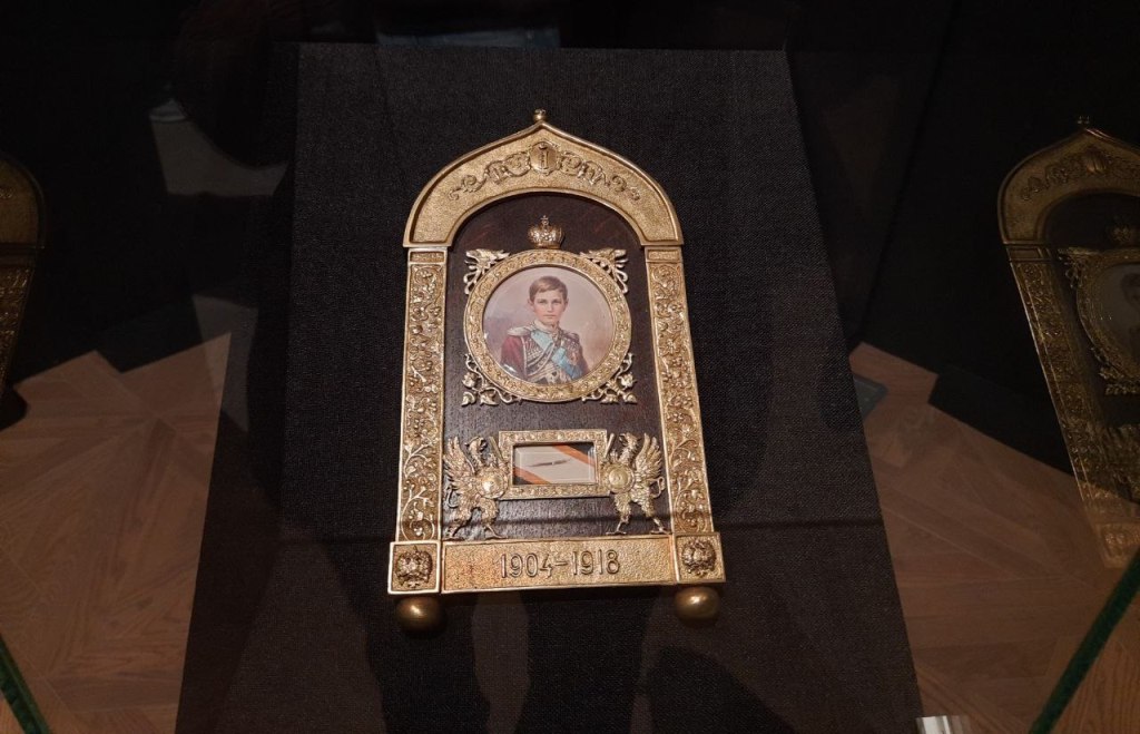 The last hall of the exhibition resembles a basement or crypt, where there are seven stelae each depicting photographic portraits of Emperor Nicholas II, Empress Alexandra Feodorovna, and their five children, who were murdered in the Ipatiev House in Ekaterinburg on the night of 16/17 July 1918. In the center of this miniature memorial hall is a unique item – a reliquary frame with a portrait of Tsesarevich Alexei Nikolaevich and a lock of his hair.