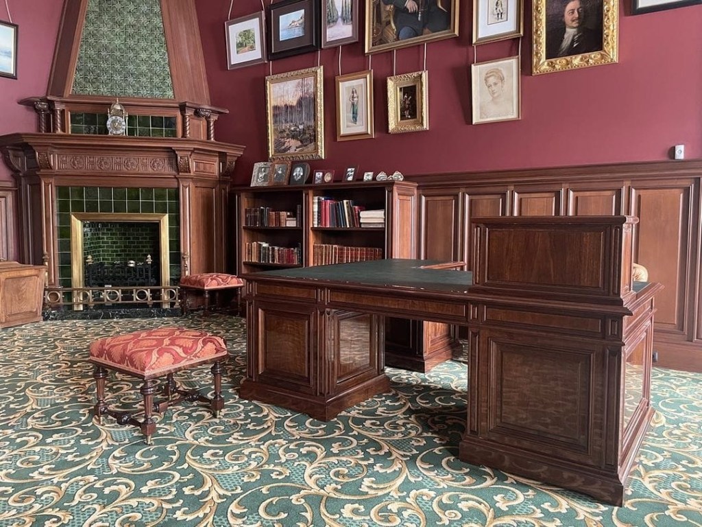 The Working Study of Emperor Nicholas II was decorated in 1896-1897 in the English Style by Roman Meltzer (1860-1943) and furniture master Karl Grinberg. It was in this room that the Emperor read papers, including numerous correspondence, received foreign ministers and dignitaries and listened to reports.