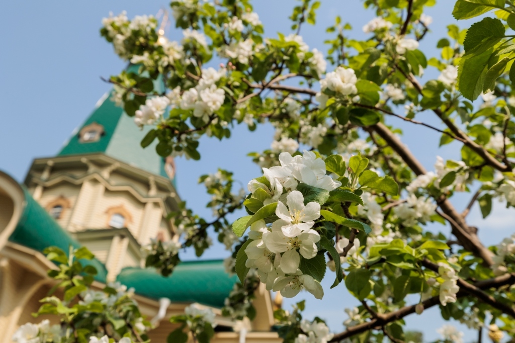 Visitors to the monastery will be delighted by the variety of blooms, including numerous varieties of daffodils, tulips, fragrant peonies, lilies, and more than 50 varieties of roses. In addition, are the apple trees that were planted next to the refectory, bursting with the abundance of snow-white inflorescences, and delicate aromas.