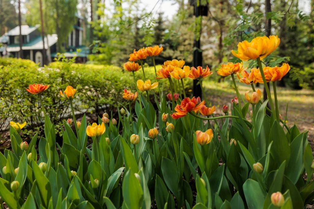 At the beginning of May, several hundred tulips bloomed. After the tulips, daffodils bloomed, followed by fragrant peonies. In addition, pilgrims and tourists will be able to admire the colourful irises, petunias and other floral arrangements that adorn the grounds of the monastery in abundance, including the pedestals of each of each of the three monuments dedicated to members of the Holy Royal Martyrs [see below].