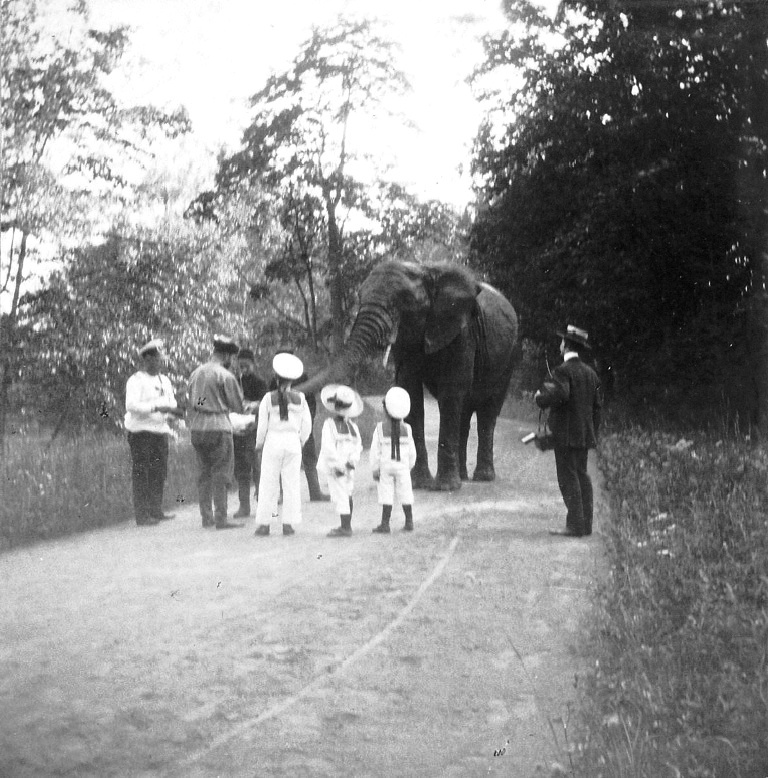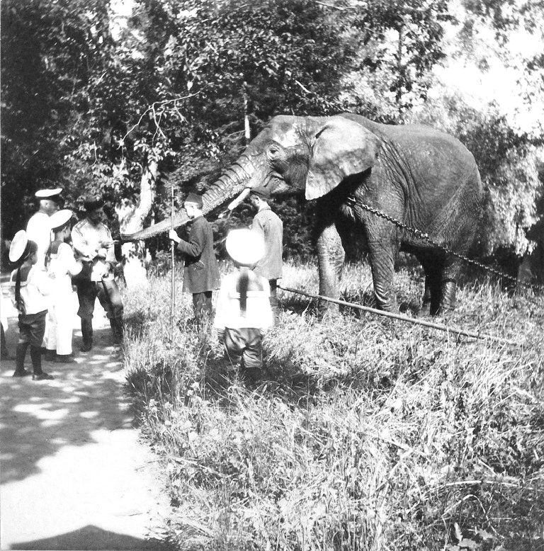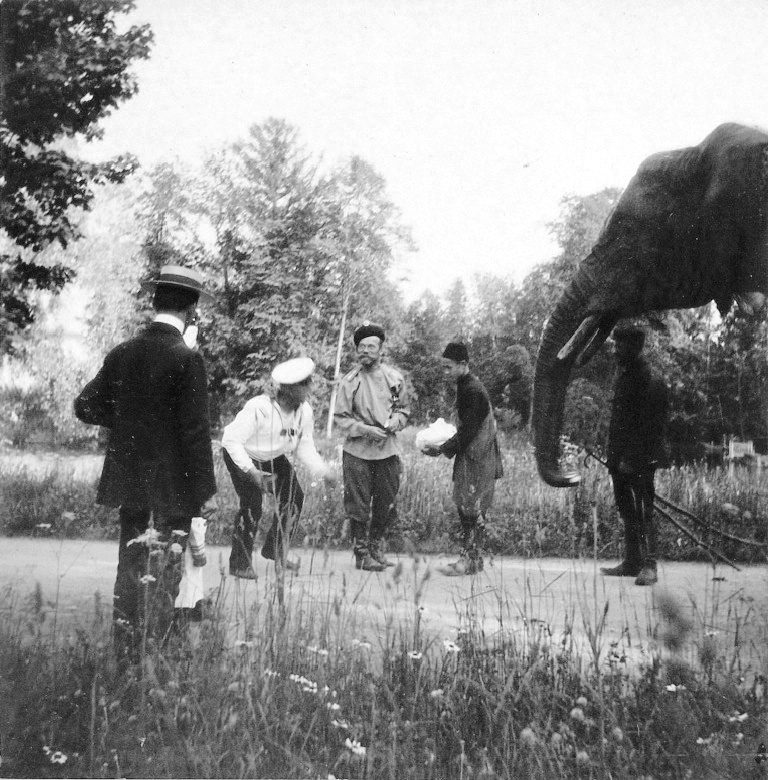 The Tsar and his family loved to spend time with the elephant, often bringing their friends and relatives. Nicholas II repeatedly made entries in his diary that he and his son and heir went to watch the elephant bathe. On 9th June 1914, Nicholas made the following entry in his diary: “Alexei and I brought an elephant to our pond and amused ourselves with its bathing.” Being fond of photography, the Tsar took several pictures of his elephant.