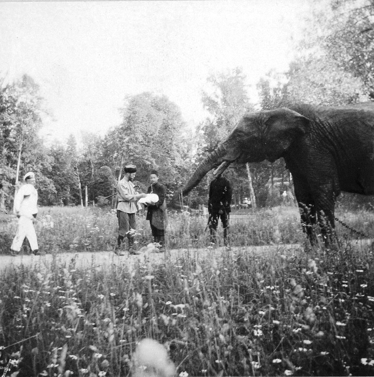 The African elephant was under the care of a Tartar – ironically called Alexei – who always wore a red fez, noted that the elephant was “good-natured and very obedient”. Every day during the summer, the Tatar walked the animal in the Alexander Park, where it was taken to a tiny lake, which was appropriately named “Elephant pond”. The elephant happily plunged into the water, taking water in his trunk, and dousing itself.