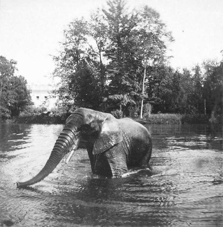 In his 1911 study of Tsarskoye Selo, Sergei Nikolaevich Vilchkovsky (1871-1928), notes that a young elephant lived in Tsarskoye Selo in July 1891.