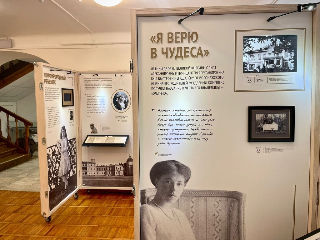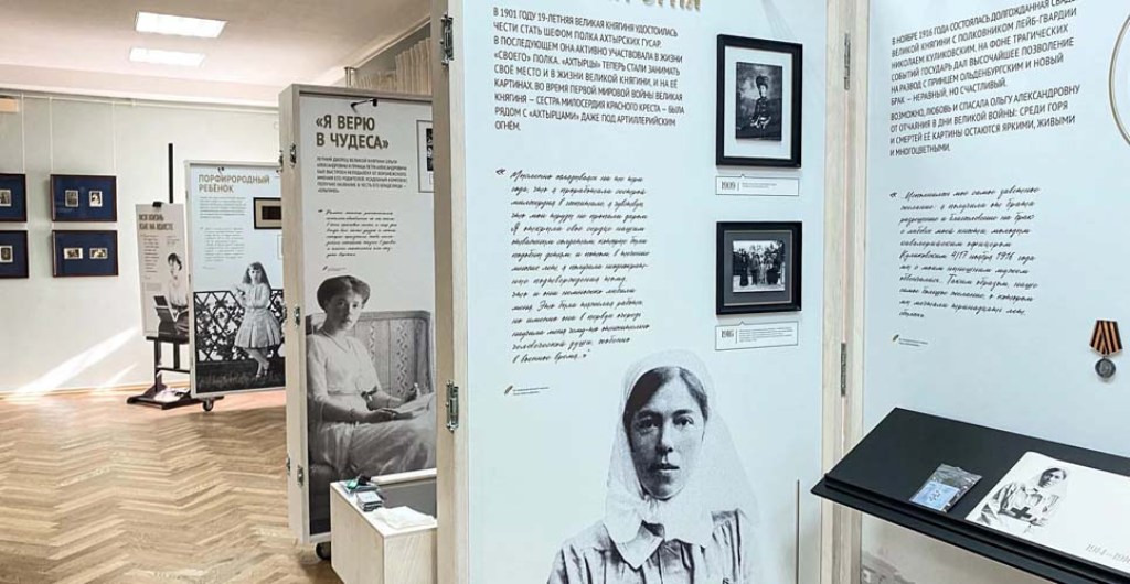The traveling exhibition has already visited the cities that were dear to the heart of the grand duchess. Among them are Gatchina (where Olga spent her childhood), Borovichi (a place close to the estate of her first husband Peter Alexandrovich[2]), Livadia in the Crimea (where Olga lived with her mother after the February 1917 Revolution), as well as the Mirsky Castle in Belarus (the Imperial Family was in close contact with the family of princes Svyatopolk-Mirsky).