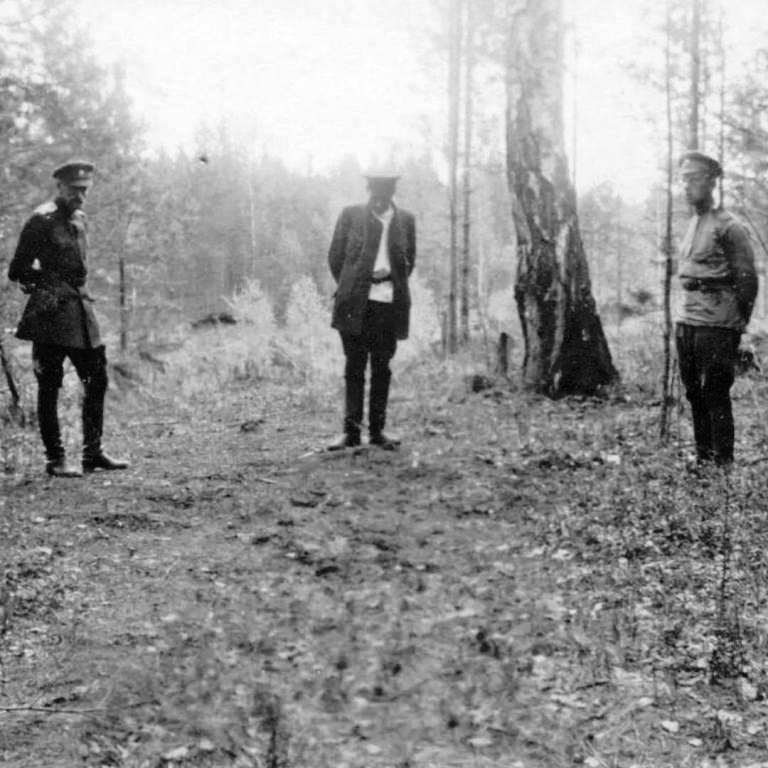 PHOTO: Nikolai Sokolov and General Mikhail Dieterichs searching for the remains of the Imperial Family near the Four Brothers Mine, near Ekaterinburg. 1919