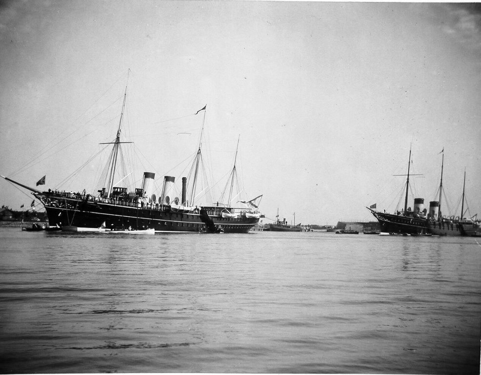 PHOTO: a rare view of the Imperial Yachts ‘Polar Star‘ (left) and ‘Standart‘ (right), docked at Libau (renamed Liepāja in 1920), located in Latvia on the Baltic Sea. August 1903.