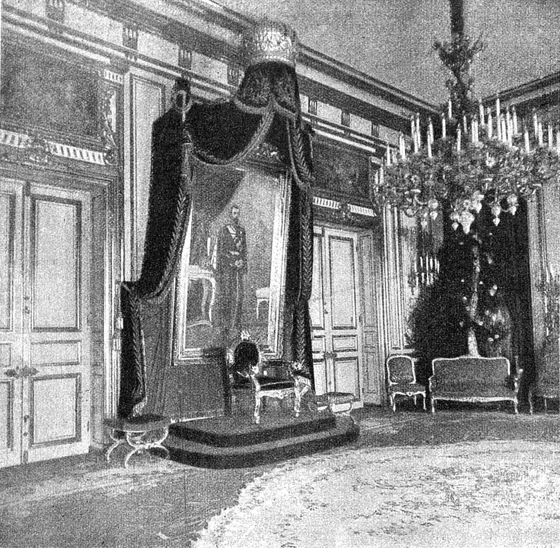 PHOTO: the throne Room, note the portrait of Nicholas II behind the throne