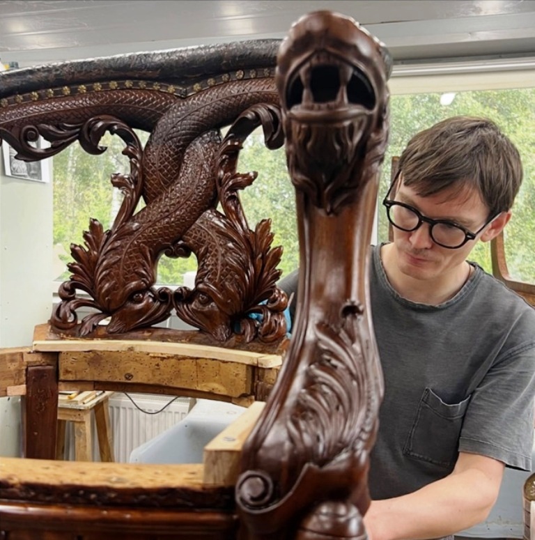 The Tsarskoye Selo State Museum continue to recreate items lost from the Alexander Palace during the Second World War . . . the Tsarskoye Selo Restoration Workshop are currently recreating the armchair for the large desk in the Working Study of Emperor Nicholas II.