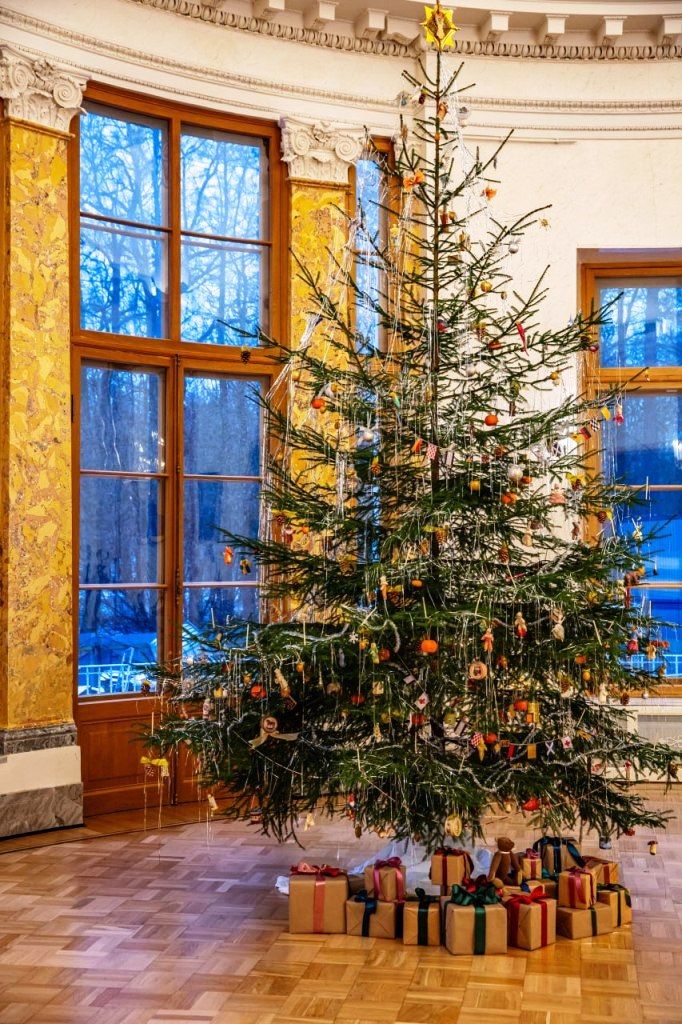 A live fir tree has been installed in the Semi-Circular Hall[1] of the Alexander Palace at Tsarskoye Selo. This is the fifth year in a row (since 2021) that the tradition of Emperor Nicholas II and his family has been revived.