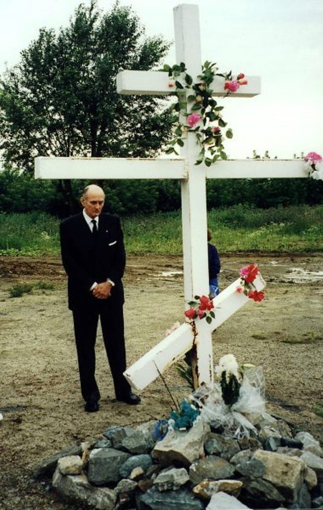 PHOTO: Prince Dimitri Romanovich (1926-2016) near the cross, where the Ipatiev House stood until 1977, demolished after a secret order of the Politburo. 1992