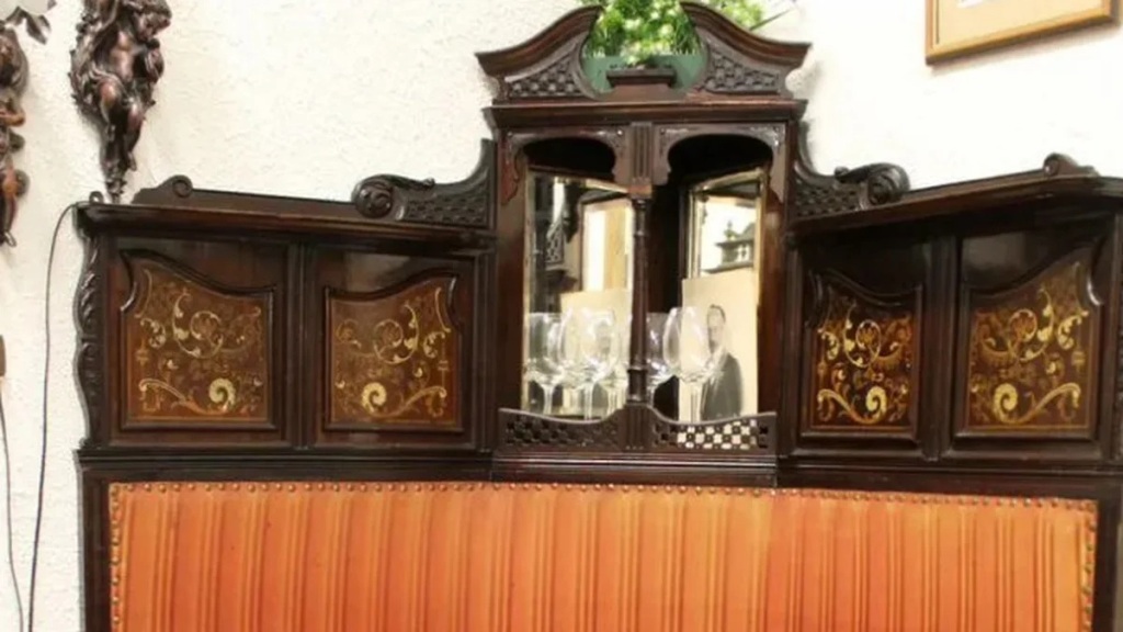The walnut Orekhov corner divan was made by the firm of Friedrich Meltzer (1831-1923), it measures 177 cm high, 110 cm wide, and can be disassembled into three tiers. The opening bid is set at 5 million rubles [$63,500 USD].