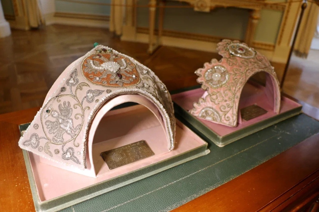 PHOTO: kokoshniks, which belonged to the Grand Duchesses Tatiana and Anastasia Nikolaevna on display in the Museum of Costumes at Pavlovsk Palace
