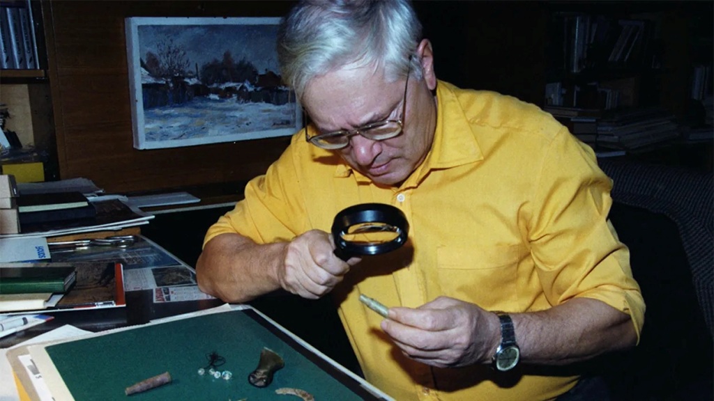 PHOTO: Alexander Avdonin examining items found during excavations in and around the site where the remains of Nicholas II and his family were exhumed in 1991