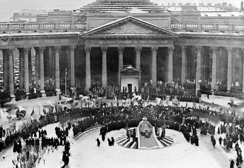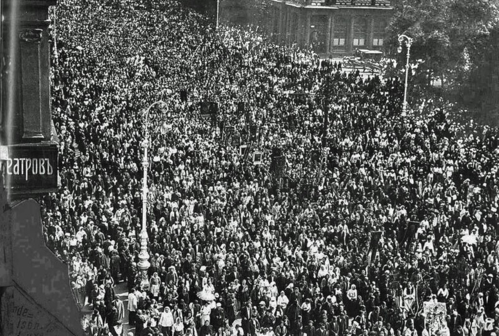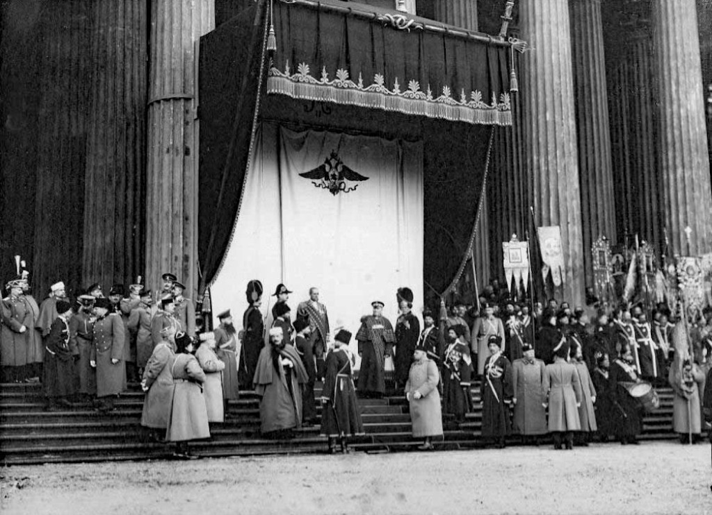 The Imperial Family travelled from the Winter Palace in a grand procession of carriages and horses to Our Lady of Kazan Cathedral on Nevsky Prospekt, to take part in a prayer service. The route to the Kazan Cathedral was lined with regimental troops and cadets of military educational institutions. Tens of thousands of people crammed the route, all hoping to get a glimpse of the Tsar and his family.