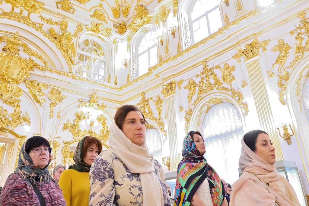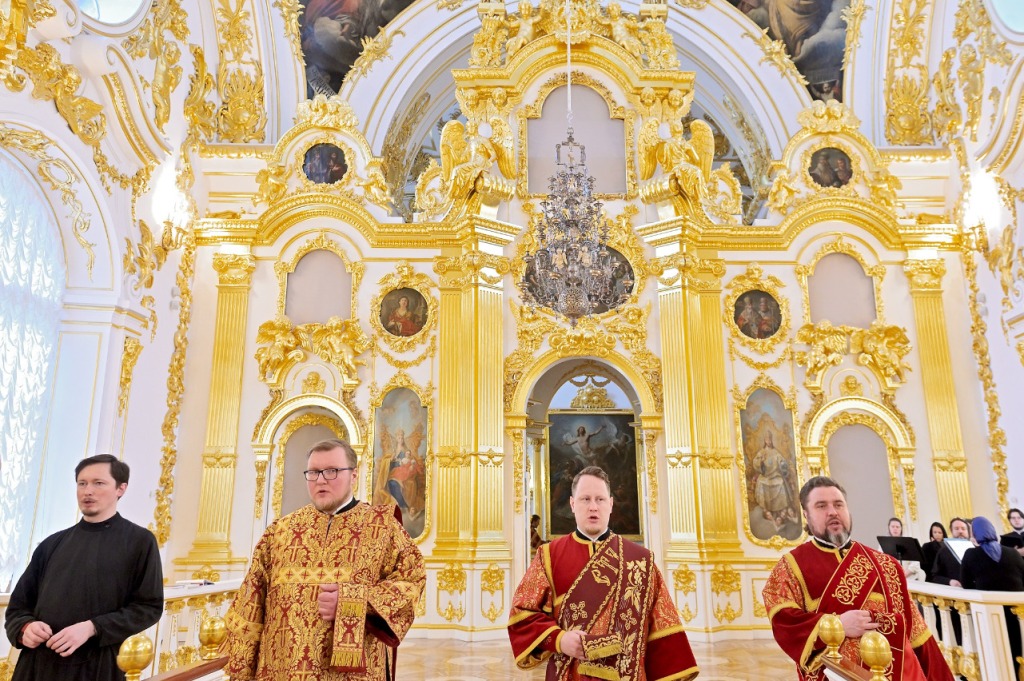 PHOTO: parishioners of the Annunciation Metochion of the Alexander Nevsky Lavra.attend the Divine Liturgy in the Winter Palace church
