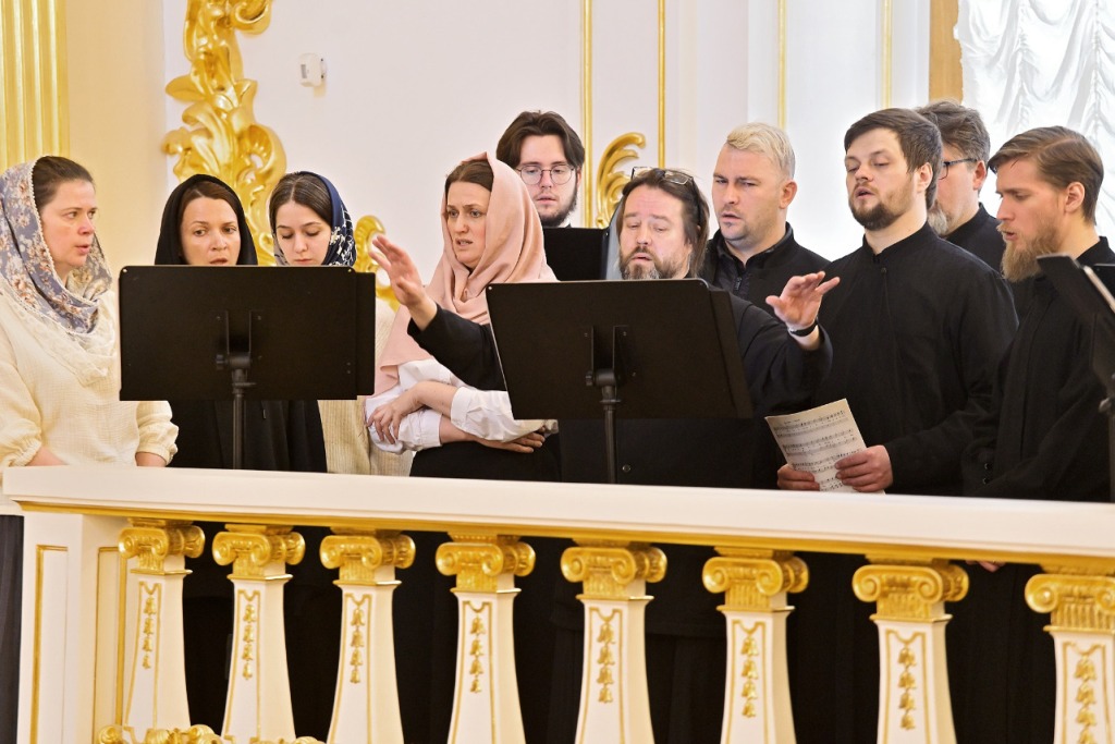 During the kissing of the cross, the choir sang an ancient Christian hymn written in the 4th century by St. Ambrose of Milan, to the music of the court composer Dmitry Bortnyansky, who composed it especially for the Great Church of the Winter Palace.