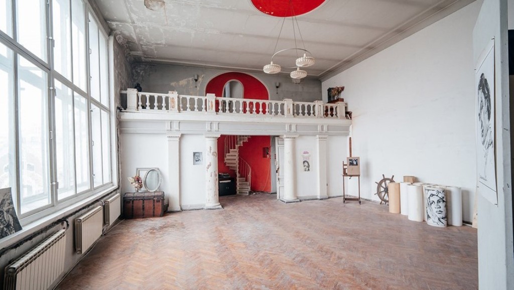Situated on the 6th floor of No. 16 Kamennoostrovsky Prospekt, the artists’ apartment-studio consisted of four levels with a total area of 150 sq. meters[1,614 sq. ft.].