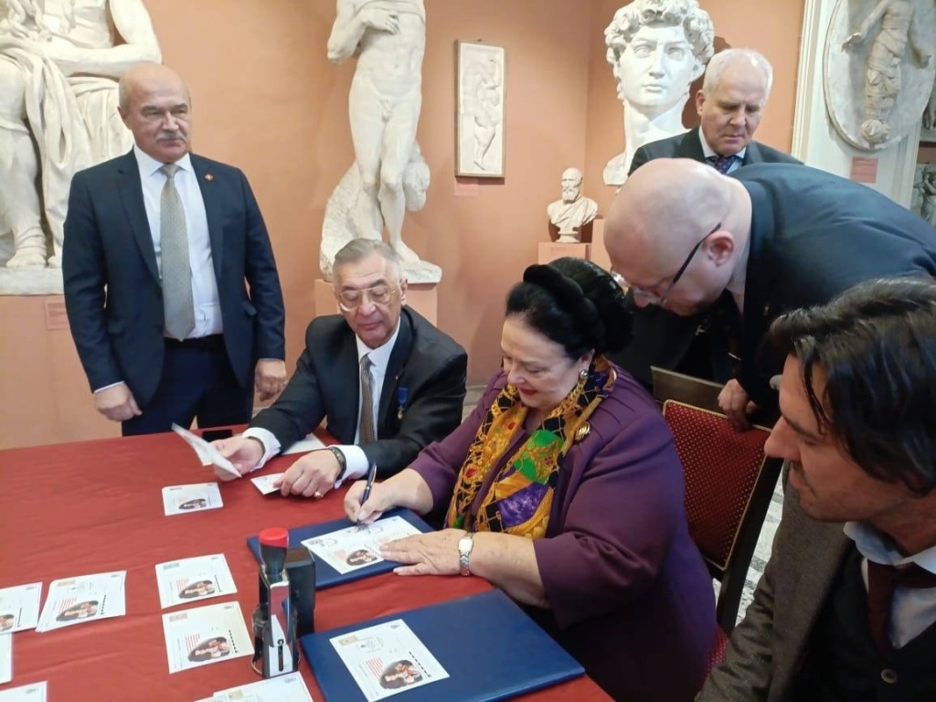PHOTO: Maria Romanova during a ceremony of cancelling postcards,