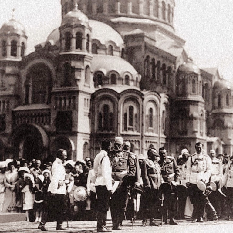 PHOTO: Emperor Nicholas II speaking with an officer in front of the Naval Cathedral