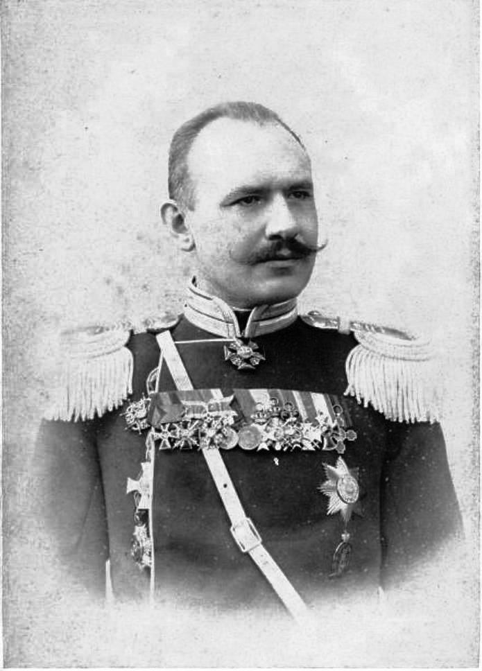 Alexander Alexandrovich Mosolov (1854-1939), was Born in Ryazan, Russia. From 1901 he served as an aide-de-camp. From 1902 he was appointed to the Retinue of His Imperial Majesty. In 1900-1916 he held the position as head of the chancellery of the Ministry of the Imperial Court, and was in the close circle of Emperor Nicholas II. He fought against the Bolsheviks in the South of Russia; in emigration he lived in France and later in Bulgaria.